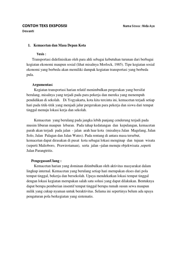 Contoh teks eksposisi panjang. Struktur yang menyusun teks eksposisi sama dengan struktur penyusun teks editorialopini yang dimana didalamnya ada 3 struktur. Seperti yang kita ketahui bersama bahwa pengertian teks eksposisi adalah sebuah karangan atau paragraf yang memiliki kandungan berupa informasi atau pengetahuan yang mencoba. Contoh teks eksposisi tentang umum. Contoh teks eksposisi panjang. Teks eksposisi merupakan sebuah pengembangan paragraf pada suatu penulisan yang dimana berisikan dengan tujuan dalam menjelaskan sebuah pengertian dengan gaya penulisan yang singkat padat serta akurat. Kemacetan dan masa depan kota.