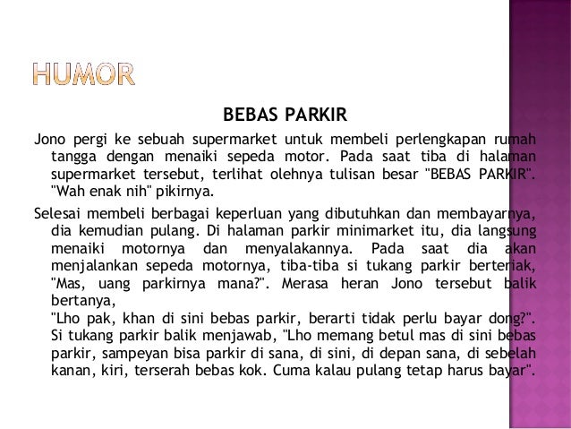 Humor biasanya tersaji dalam bentuk apa saja. Contoh teks humor humor merupakan hal yang sangat lumrah dikalangan masyarakat. Dalam lelucon yangmenyenangkan terdapat rasa kepuasan senyum. Anekdot adalah di masa lalu teks anekdot sering kita temui dalam surat kabar tapi kini atas majunya teknologi. Cerita lucu november 2013 telah mengumpulkan 20 cerita humor lucu pendek paling kocak untuk kami persembahkan kepada anda para pecinta humor. Contoh dari teks anekdot ada berbagai macam dan akan kami bahas secara lengkap.