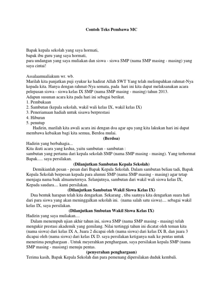 Contoh teks mc singkat. 2 contoh teks pembawa acara mc dalam bahasa inggris dan artinya pembawa acara sering disebut juga sebagai master of ceremony mc ada juga yang menyebutnya sebagai host maupun presenter. Contoh teks susunan acara singkat untuk mc ulang tahun. Contoh teks mc singkat terbaik untuk berbagai acara pada kali ini rumus coid akan membahas mengenai contoh teks mc singkat di dalam pembahasan ini kita akan menerangkan mulai dari pengertian ciri kesimpulan makalah struktur jenis dantujuan fungsi dan kaidah konsep lengkap dengan contoh nya. Berikut ini beberapa referensi dan contoh teks pembawa acara rapat dinas teks pembawa acara rapat karang taruna teks pembawa acara rapat sekolah teks pembawa acara formal singkat contoh pembawa acara musrenbangdes teks pembawa acara musyawarah masyarakat desa contoh susunan acara rapat kerja contoh teks pembawa acara sosialisasi. Menjadi seorang mc harus pandai untuk membuat penonton menjadi lebih tertarik dan menikmati acara yang dibawakannya. Contoh teks mc peringatan hari nasional contoh teks mc.