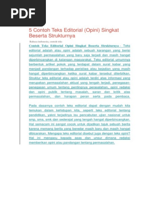 Contoh teks editorial opini singkat beserta strukturnya teks editorial ialah atau opini ialah sebuah karangan yang berisi sejumlah permasalahan yang gres saja terjadi dan masih hangat diperbincangkan di kalangan masyarakat. Isu yang diangkat meliputi contoh teks editorial tentang sampah contoh teks editorial tentang pendidikan dan lain sebagainya. Contoh teks eksposisi teks eksposisi merupakan suatu tulisan yang berisi fakta atau informasi berbentuk pengembangan paragraf yang berupaya untuk menerangkan suatu keadaan tertentu sehingga orang yang membacanya mendapatkan pengetahuan dari apa yang diuraikan oleh penulis. Karena dalam artikel ini kami membahas contoh teks editorialopini beserta strukturnya sebaiknya kita mengetahui terlebih dahulu struktur teks editorialopini yaitu sebagai berikut. 4 contoh teks sejarah singkat beserta strukturnya yang berdasarkan 5w1h. Secara sadar atau tidak sadar kemungkinan besar kamu sudah pernah membaca contoh teks editorialopini karena ciri ciri teks editorial salah satunya yaitu tema yang dibicarakan sedang hangat.