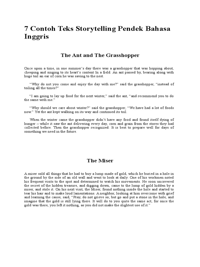 Story 1 the lion and the mouse. Pada kesempatann kali ini ibi akan membahas tentang storytelling. Teks story telling dare to dream hari ulang tahun seseorang selain berbagai contoh teks storytelling di atas jika kita masih membutuhkan cerita lain untuk storytelling saya akan memberikan update cerita menarik lainnya yang bisa kita gunakan. Cerita pendek dalam bahasa inggris disebut dengan short story. 5 contoh story telling singkat the elephants and the rats beserta arti. 9 contoh teks short story telling dalam bahasa inggris beserta artinya story telling is the interactive art of using words and action to reveal the elements and images of.