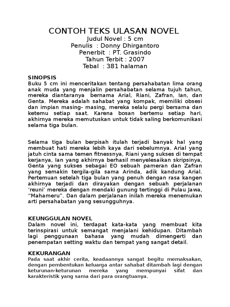 Contoh teks ulasan novel. Novel karya hamida surya berjudul menemuimu dalam doa. Indah merupakan tokoh utama dalam novel. Dalam novel ini diiceritakan bahwa indah ingin melupakan mantan kekasihnya. Bisa juga berupa ulasan yang buruk tergantung dari pandangan sang pengulas. Contoh teks ulasan novel film cerpen album lagu drama identitas karya puisi ilmu pengetahuan buku yang singkat lengkap baik dan benar. Pengertian teks ulasan contoh ciri tujuan struktur dan kaidahnya sebagai insan akademik kita tentu harus membaca karya karya ilmiah antara lain buku.