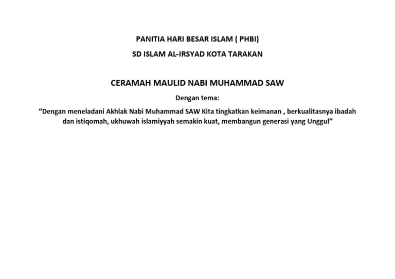 Contoh tema maulid nabi. Kata maulid itu sendiri berasal dari bahasa arab yang artinya hari. Tema merupakan pondasi kemana arah dan tujuan hasil dari kegiatan tersebut termasuk dalam kegiatan keislaman seperti maulid saw. Nah nabi muhammad saw diutus dikatakan oleh ayat tersebut di atas bahwa rasul adalah sebagai bukti yang nyata. Sehingga kegiatan tersebut tidak hanya sebatas serimonial semata. Hub wa 085 213 974 463. Seyogyanya dalam penyelenggaraannya panitia harus membuat sebuah tema biar kegiatan tersebut tepat sasaran.