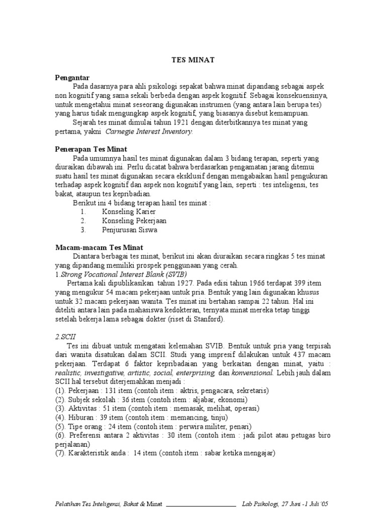 Contoh soal tes bakat sebelum mimin membagikan contoh soal tes bakat dan minat perlu anda ketahui bahwa tes bakat merupakan sebuah tes untuk mengukur kemampuan dasar yang dimiliki seorang guru. Pengukuran psikologi menjadi salah satu kebutuhan dalam berbagi aspek kehidupan moderen saat ini. Pengertian bakat macam jenis dan contoh bakat bakat adalah kemampuan yang memang sudah melekat dan dimiliki oleh setiap orang yang bisa digunakan dalam mempelajari sesuatu hal dengan cepat dan bahkan beberapa diantaranya bisa mempelajari dalam waktu singkat serta mendapatkan hasil yang sangat baik pula. Pengertian tes bakat dan minat tes prestasi dan tes inteligensi pengertian jenis tes perlu dipahami sehingga dapat digunakan dengan tepat sesuai tujuan. Banyak yang beranggapan bahwa bakat dan minat adalah dua hal yang sama padahal keduanya berbeda. Pengertian tes minat dan bakat menurut para ahli beserta contoh tes minat dan bakat merupakan salah satu metode dan alat ukur dalam psikologi yang dapat membantu dalam menyusun rekomendasi untuk individu memilih jurusankarir sesuai dengan minat dan potensinya.