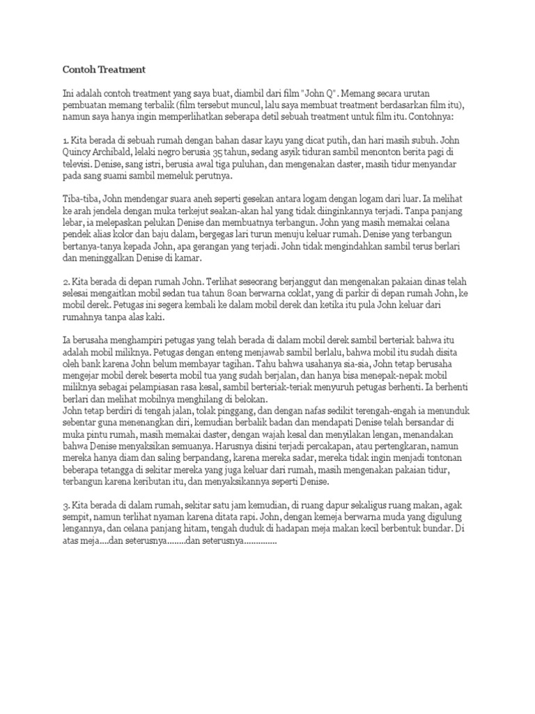 Treatment film pendek. Kita pasti sudah tau sama artis hollywood yang satu ini taylor swift. Cewek yang punya suara merdu. Contoh treatment ini adalah contoh treatment yang saya buat diambil dari film john q.
