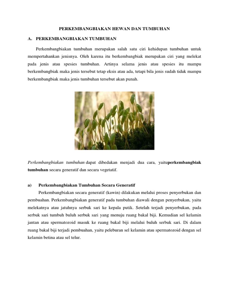 Contoh tumbuhan yang berkembangbiak secara generatif antara lain. Anisogami anisogamy adalah keadaan yang melibatkan peleburan gamet gamet yang berlainan ukuran danatau motilitasnya. Perkembangbiakan generatif pada tumbuhan makhluk hidup tentu melakukan perkembangbiakan dengan tujuan mekestarikan jenisnya. Tumbuhan dapat berkembang biak dengan cara aseksual atau perkembangbiakan vegetatif pada tumbuhan yang terbagi atas vegetatif alami dan vegetatif buatan.