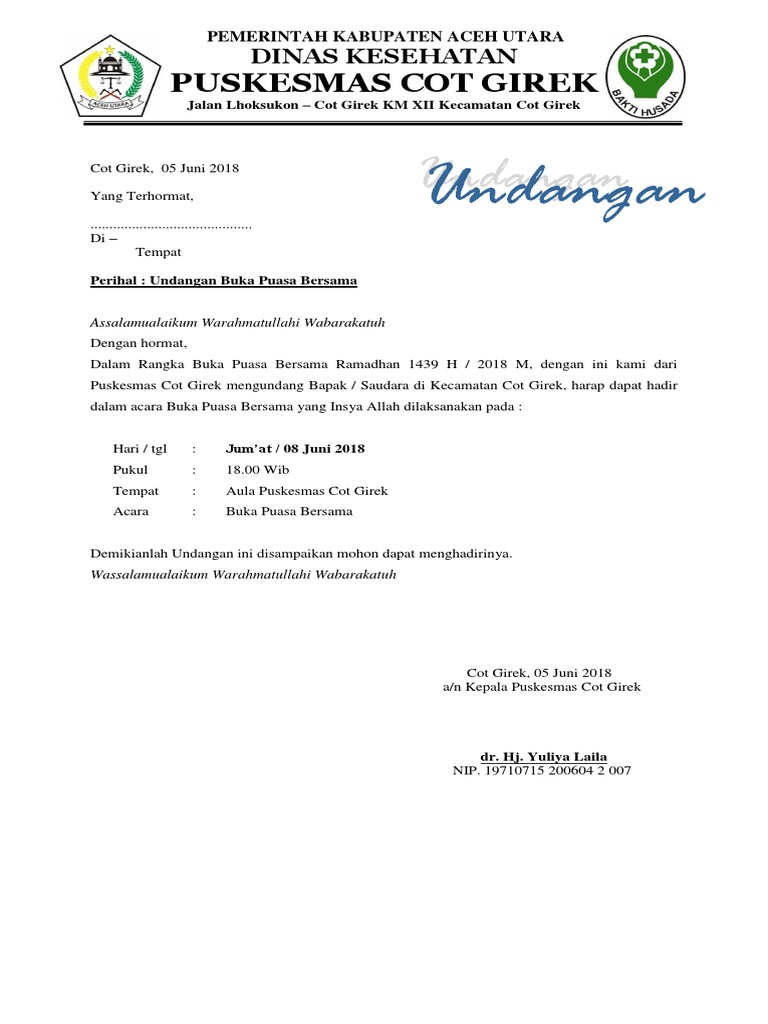 Contoh surat undangan pemateri persami. 5 contoh undangan buka puasa bersama dalam bahasa inggris beserta arti lengkap bulan ramadhan merupakan sebuah bulan yang istimewa bagi selurug umat islam di dunia karena pada bulan tersebut umat muslim berbondong bondong untuk mengumpulkan pahala dan mengurangi dosa dosa nya. Jangan ragu kontak ke banner yang terdapat di sebelah agar mendapatkannya. Undangan buka bersama dan santunan yatimpiatu dan dhuafa ramadhan 1434 h. Contoh undangan buka puasa bersama halo sahabat sekalian yang berbahagia saya ucapkan marhaban ya ramadhan selamat datang bulan ramadhan bulan yang penuh berkah bulan dimana seluruh pintu surga di buka selebar lebarnya dan pintu neraka di tutup serapat rapatnya bulan dimana waktu yang tepat untuk mendapatkan amalan amalan baik sebanyak banyaknya yaitu dengan berpuasa menahan haus dan. Salah satu kegiatan yang sering diadakan dibulan suci ini adalah acara buka puasa bersama baik itu di sekolah di tempat kerja instansi pemerintah dan swasta di rumah rumah atau ditempat yang telah.
