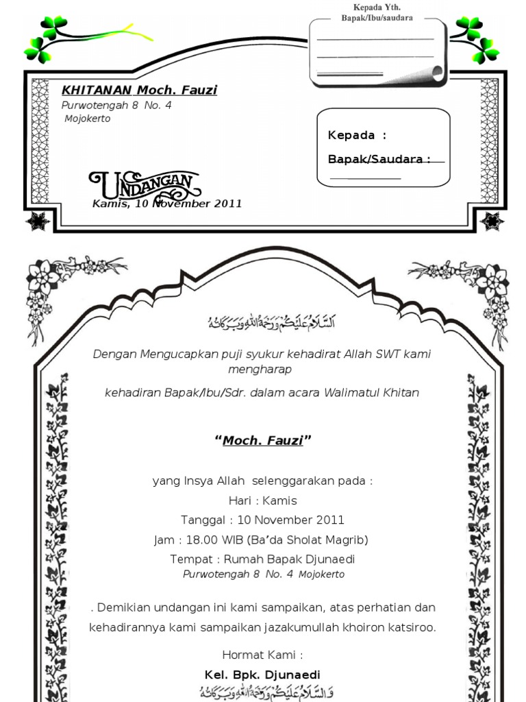 Di artikel ini juga anda bisa download desain undangan pernikahan format doc dan cdr bisa diedit. Contoh undangan khitanan yang bisa di edit bertemu lagi yah kali ini admin akan membagikan beberapa contoh udangan khitanan yang bisa di edit oleh semua kalangan. Model undangan panitiadoc 35. Hari ini team gelas pecah iseng membuat format undangan khitanan terbaru yang juga bisa digunakan untuk undangan walimatul khitan ms word doc psd cdr. Pasti kamu lagi sibuk sibuknya mempersiapkan segala sesuatunya demi lancarnya acara pernikahanmu nanti. Karusel sebelumnya karusel berikutnya.