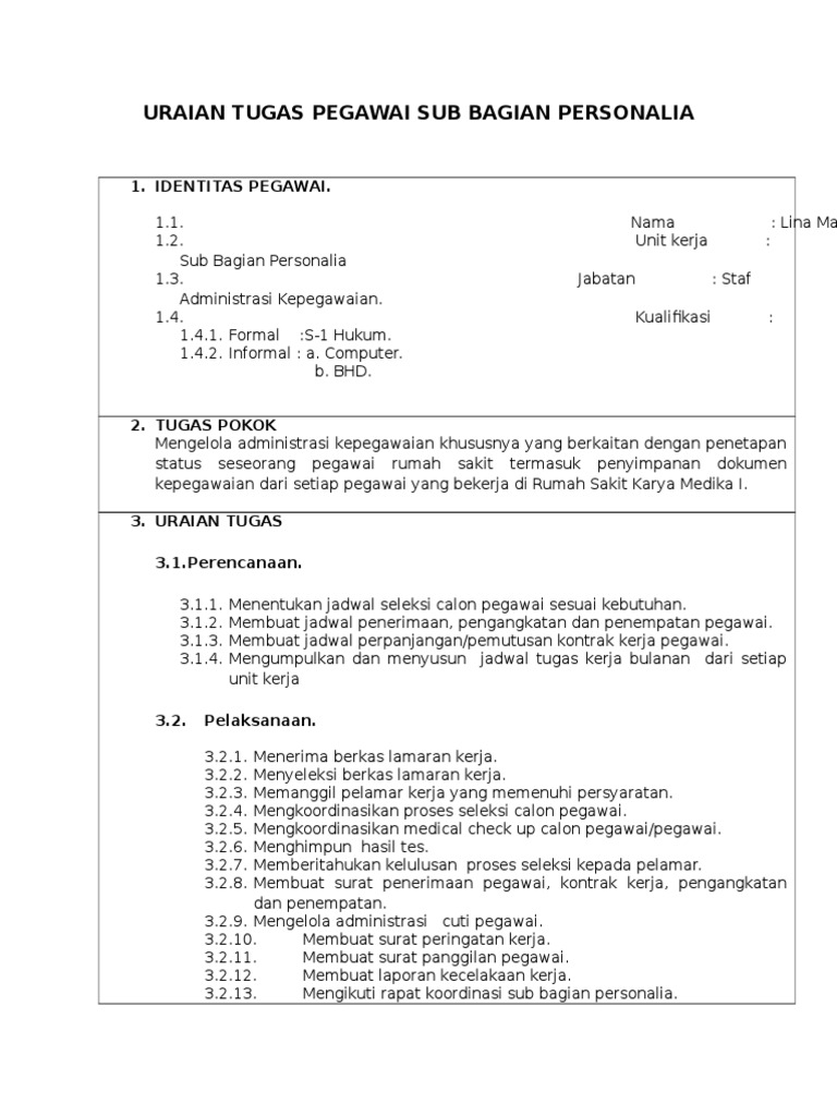 Contoh Uraian Tugas Pekerjaan لم يسبق له مثيل الصور Tier3 Xyz