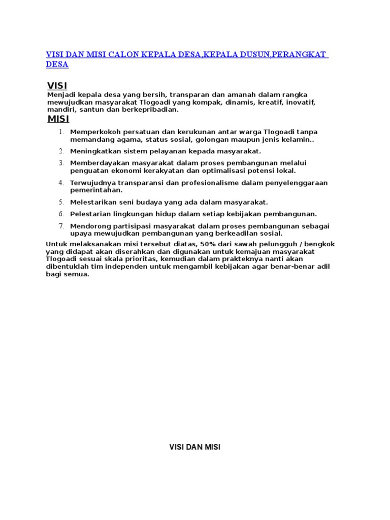 Contoh Visi Misi Calon Kepala Desa Terbaik Format Pdf Doc