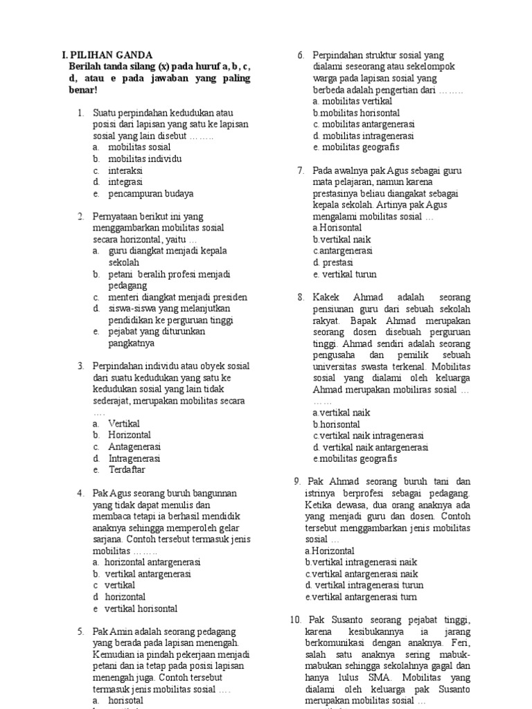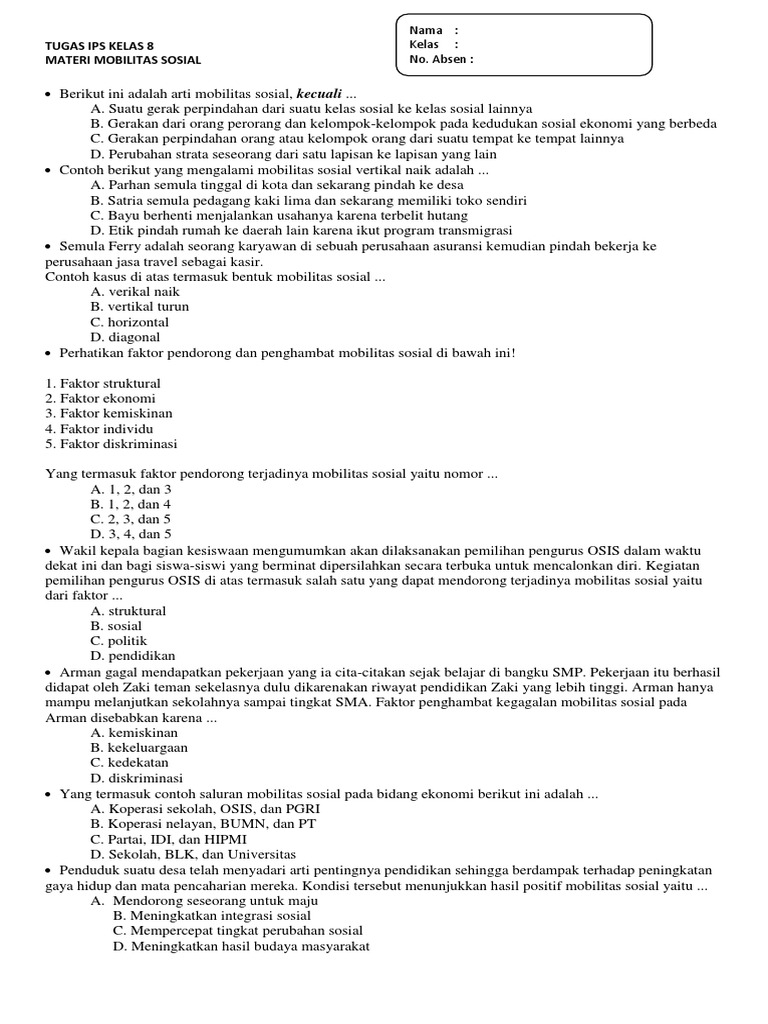 Sebelum menjawab soal apakah kamu tahu apa itu mobilitas sosial. Mobilitas vertikal naik mobilitas vertikal turun mobilitas intragenerasi dan mobilitas antargenerasi. Hal hal yang dapat menghambat terjadinya social climbing dan justru dapat mengakibatkan terjadinya contoh kasus mobilitas sosial vertikal ke bawah antara lain adanya perbedaan ras diskriminasi kelas adanya faktor ekonomi seperti kemiskinan faktor agama dan bahkan perbedaan jenis kelamin. Berdasarkan penjelasan tersebut sesuai dengan arahnya kita dapat membedakan mobilitas vertikal atas mobilitas vertikal naik dan mobilitas vertikal turun. 1jelaskan perbedaan dengan disertai contoh mobilitas sosial naik dan mobilitas sosial turun 2untuk mendapatkan jabatan politik tertentutentu terdapat persaingan yang dapat memunculkan konflik sosialapa cara kalian untuk meminimalisir interaksi sosial tersebut agar tdk memicu konflik.