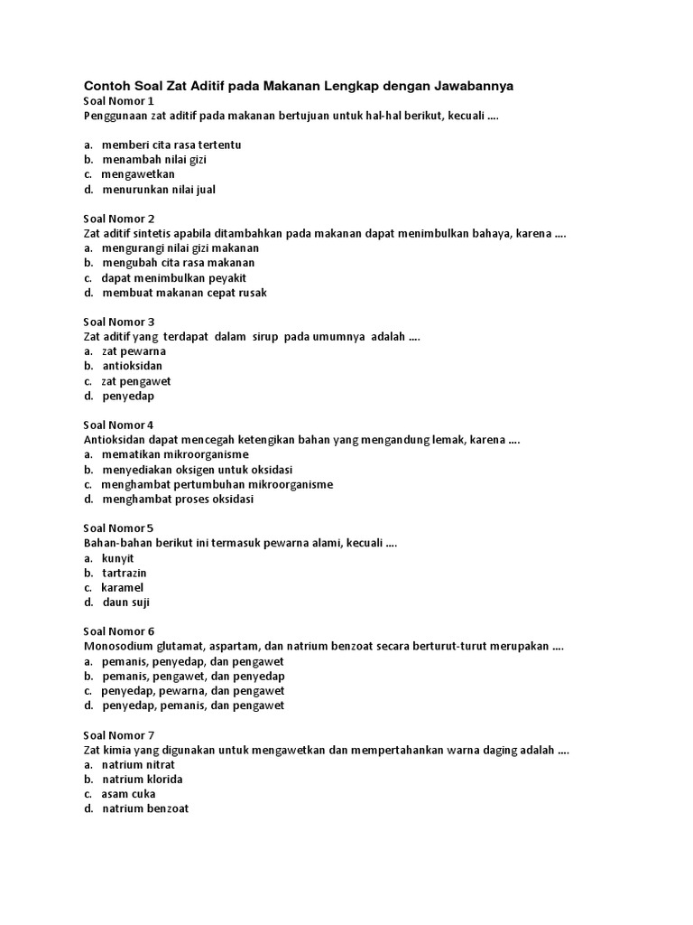 Sebutkan 5 contoh bahan aditif yang biasa ditambahkan pada makanan. Contohnya adalah kalsium aluminium natrium dan kalsium aluminium silikat yang biasa ditambahkan pada garam meja gula bubuk soda kue dan makanan lain yang berbentuk bubuk. Garam alginat dan gliserin yaitu bahan aditif buatan yang berfungsi untuk memekatkan dan menstabilkan makanan sehingga bertekstur lembut. Tentunya kita harus berhati hati terhadap setiap makanan yang kita makan jangan sampai ada sesuatu yang ketika dimakan malah merugikan kita. Aditif makanan atau makanan aditif adalah zat yang ditambahkan dengan sengaja untuk makanan dalam jumlah kecil dengan tujuan untuk meningkatkan penampilan rasa tekstur rasa dan memperpanjang umur simpan. 4bagaimana upaya pemerintah dalam rangka mengurangi peredaran narkoba di indonesia. Zat aditif ini bila ditambahkan pada makanan dapat membantu pembentukan sistem dispersi yang homogen.
