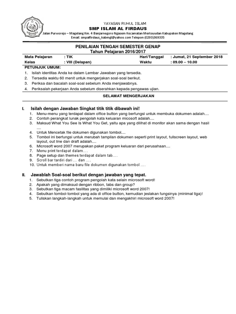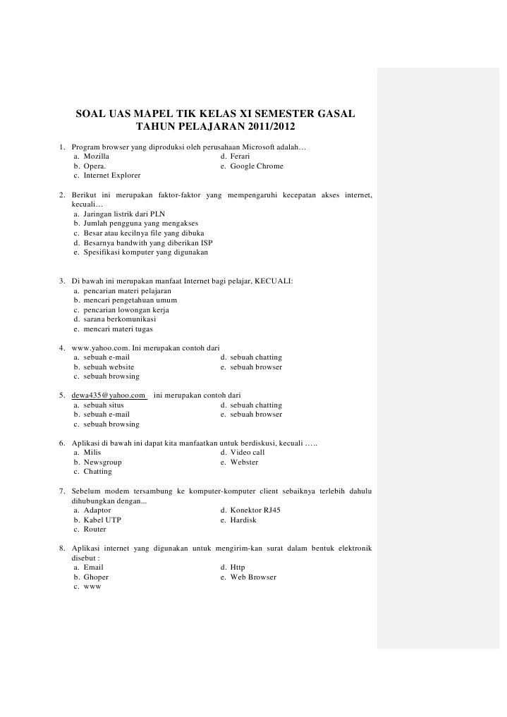 Ae mail bkomputer cchatting dbrowsing einternet 2salah kirim rawan penyadapan respon terlambat ini merupakan. Kumpulan soal soal tik 1nyaman cepat murah hemat sumber daya ini merupakan keuntungan daripemakaian.